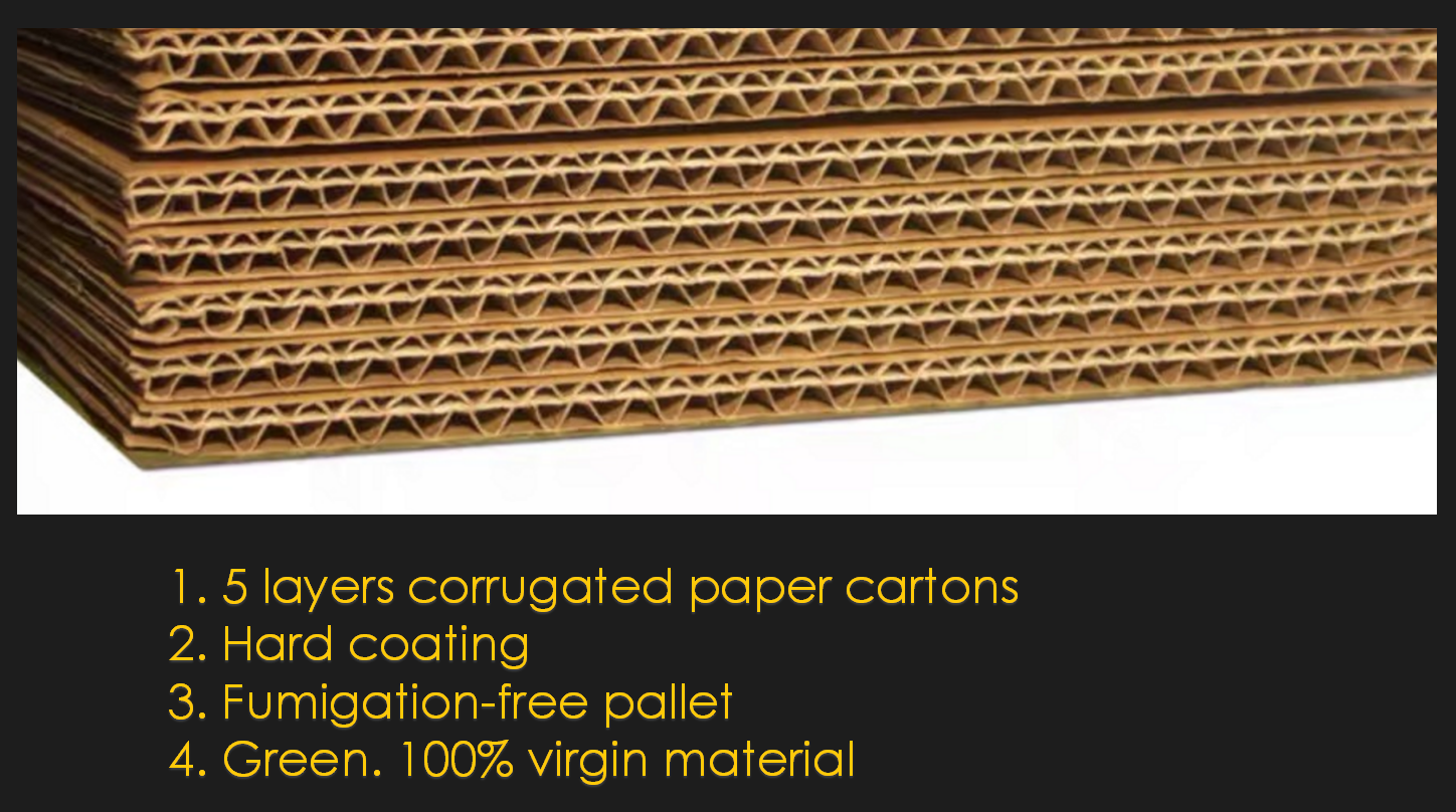 Packaging Details : 1. 5 layers corrugated paper cartons 2. Hard coating 3. Fumigation-free pallet